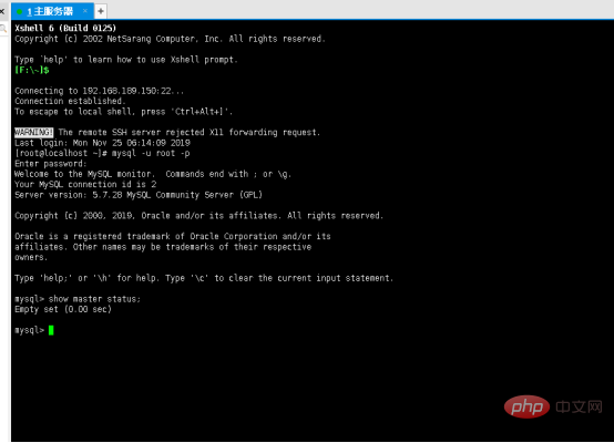 5、进入mysql 执行刚刚那条命令当能够看这个信息的时候,就证明binlog日志就开启成功