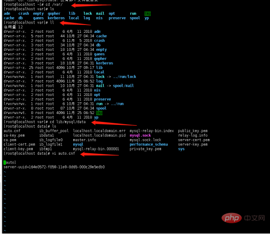 2、由于是克隆,所以会导致服务的uuid是相同的,执行这几行命令,将auto.cnf中的uuid清空;